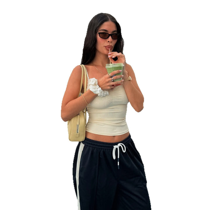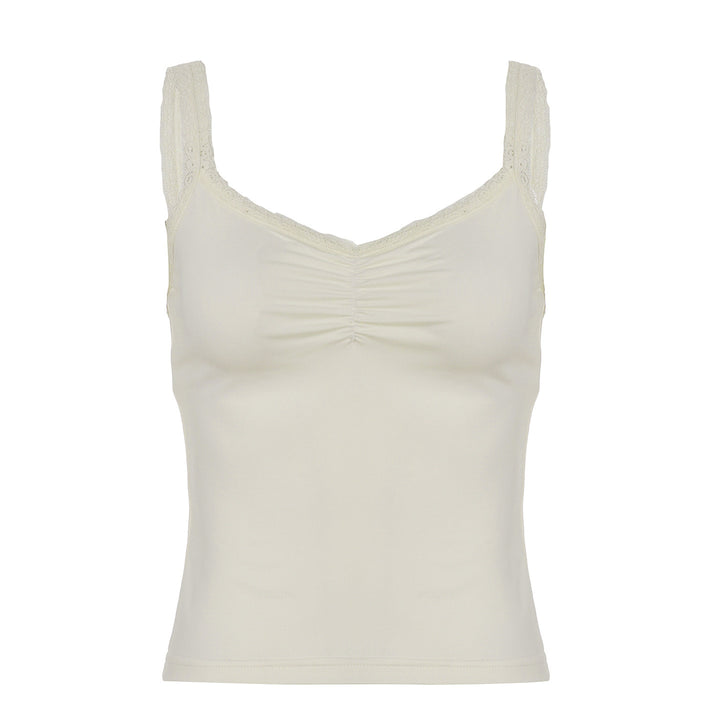 Lace Stitching Pleated Spaghetti Strap Tank Top