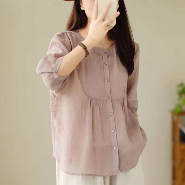Short-sleeved T-shirt Summer New Belly Top High-end Linen