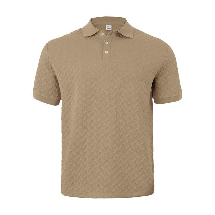 Solid Color Jacquard Short Sleeve Casual Polo Collar Men's